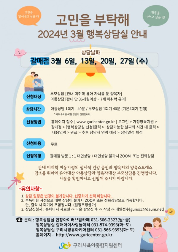 [갈매 행복상담실-3월]매주(수) 15:00~15:40 아동상담, 부모상담