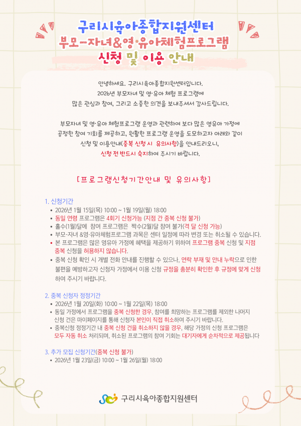 *** 프로그램 신청 확정은 등본 확인 후 가능하며, 마이페이지[신청완료]를 확인해주세요.