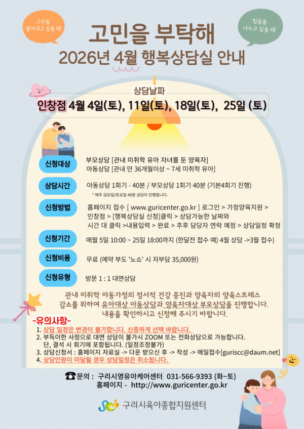 [행복상담실-4월]매주(토) 12:00~12:40 부모상담