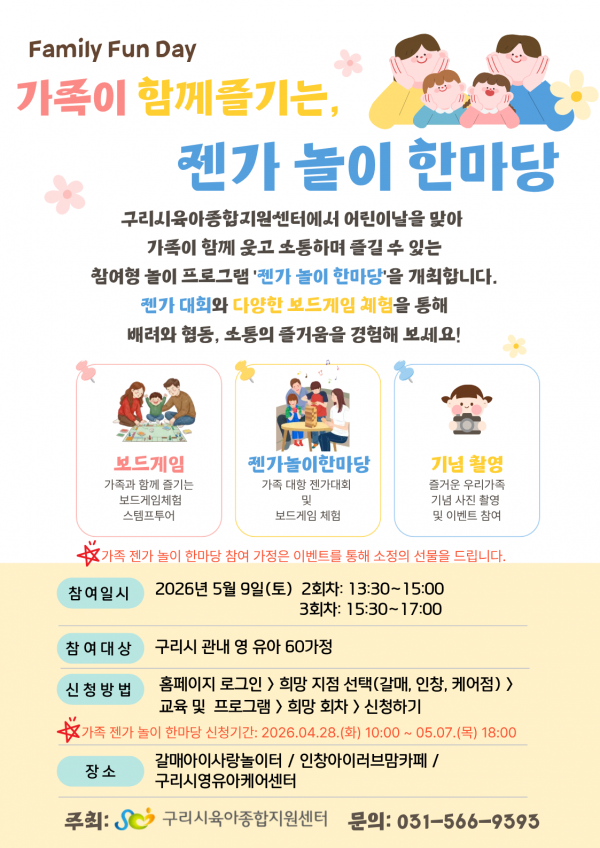 | 교육대상 | 구리시 관내 영유아가정 10가정 | 교육정원 | 10명 (대기자 10명) |