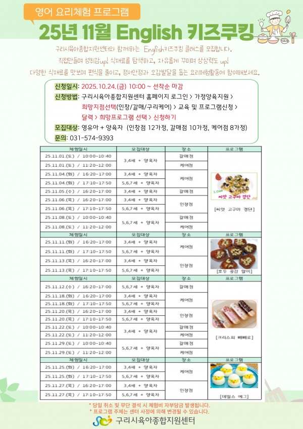| 교육대상 | 구리시 관내 5~7세 유아와 양육자 | 교육정원 | 10명 (대기자 10명) |