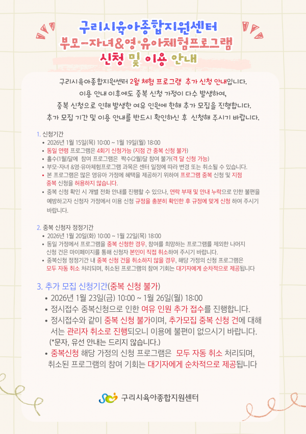 *** 프로그램 신청 확정은 등본 확인 후 가능하며, 마이페이지[신청완료]를 확인해주세요.