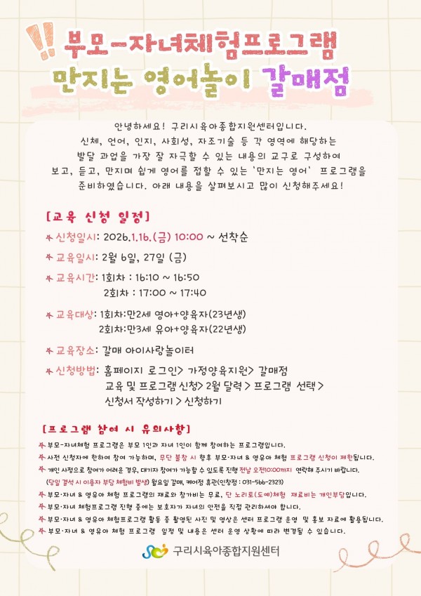 **영어놀이 프로그램 다회기 프로그램으로 2/4일만 신청해주시면 됩니다.