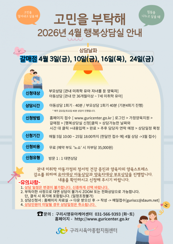 [행복상담실]매주(금)11:10~11:50 부모상담, 아동상담