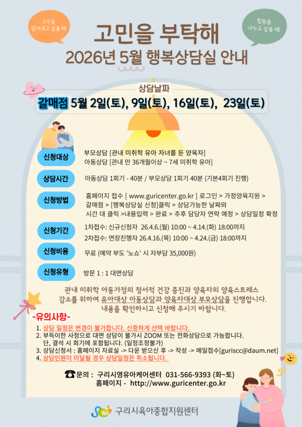 [행복상담실]매주(토)12:50~13:30 부모상담 또는 아동상담