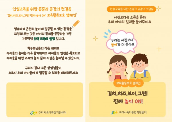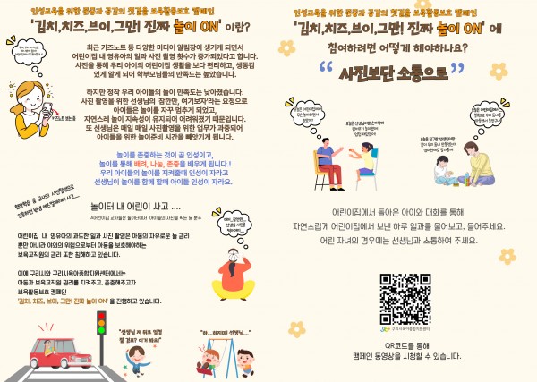 어린이집지원 보육활동보호 캠페인 '김치,치즈,브이,그만! 진짜 놀이 ON' 리플릿
