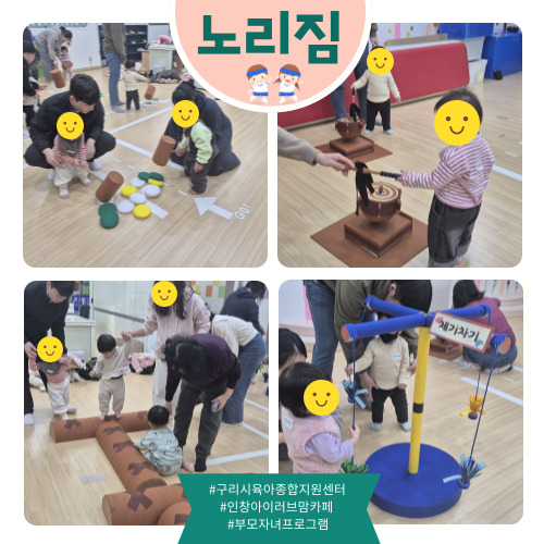 가정양육지원 [부모자녀프로그램]인창아이러브맘카페-노리짐 페이지 정보 작성자 관리자 댓글 0건 조회 19회 작성일 2026-01-17 09:31 본문 오늘은 '전통놀이'를 주제로 재미있는 활동을 했습니다.참여해 주셔서 감사합니다 ^^ 목록 이전글[부모자녀프로그램]인창아이러브맘카페-노리오감 26.01.17 다음글[부모자녀프로그램]갈매아이사랑놀이터-잉글리쉬키즈쿠킹 26.01.16