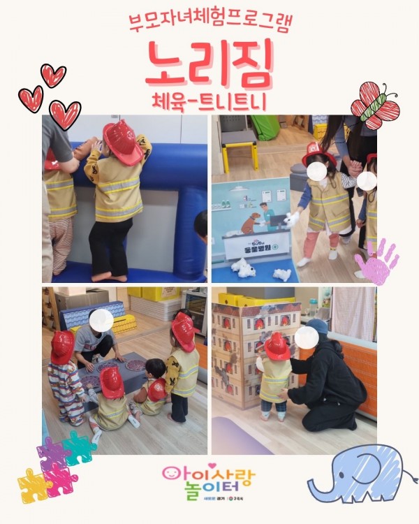 가정양육지원 [부모자녀프로그램]갈매아이사랑놀이터-노리짐 페이지 정보 작성자 관리자 댓글 0건 조회 19회 작성일 2026-01-30 14:15 본문 소방관이 되어 동물도 구조하고 불도 껐어요!참여 감사합니다 ♥ 목록 이전글[부모자녀프로그램]인창아이러브맘카페-노리짐 26.01.31 다음글[부모자녀프로그램]갈매아이사랑놀이터-노리토 26.01.30
