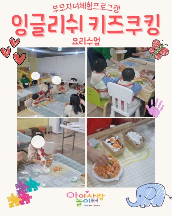 가정양육지원 [부모자녀프로그램]갈매아이사랑놀이터-잉글리쉬키즈쿠킹 페이지 정보 작성자 관리자 댓글 0건 조회 4회 작성일 2026-01-16 15:57 본문 달콤한 과일이 가득 들어간 "과일오믈렛"을 만들어 보았어요참여 감사합니다 ♥ 목록 다음글[부모자녀프로그램]갈매아이사랑놀이터-노리짐 26.01.16