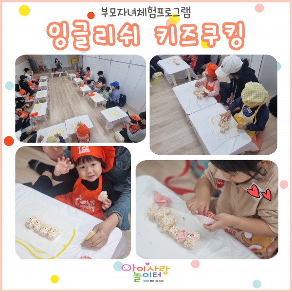 가정양육지원 [부모자녀프로그램]갈매아이사랑놀이터-잉글리쉬 키즈쿠킹 페이지 정보 작성자 관리자 댓글 0건 조회 116회 작성일 2025-10-18 14:46 본문 달콤한 몬스터 강정 만들기!참여 감사사합니다 ♥ 목록 이전글[부모자녀체험프로그램]잉글리쉬키즈쿠킹-11월 신청 안내문 25.10.18 다음글[부모자녀프로그램]갈매아이사랑놀이터-직업체험 25.10.18