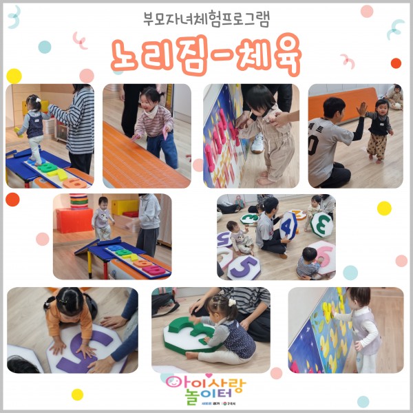 가정양육지원 [부모자녀프로그램]갈매아이사랑놀이터-노리짐 페이지 정보 작성자 관리자 댓글 0건 조회 12회 작성일 2025-11-14 11:41 본문 숫자놀이 해보았어요!참여 감사합니다 ♥ 목록 이전글[부모자녀프로그램]구리시영유아케어센터-잉글리시키즈쿠킹 25.11.15 다음글[부모자녀프로그램]갈매아이사랑놀이터-잉글리쉬키즈쿠킹 25.11.14