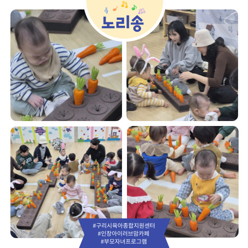 가정양육지원 [부모자녀프로그램]인창아이러브맘카페-노리송 페이지 정보 작성자 관리자 댓글 0건 조회 7회 작성일 2025-12-16 11:26 본문 오늘은 '깡총토끼'를 주제로 즐겁게 활동했습니다.참여해 주셔서 감사합니다 ^^ 목록 이전글[부모자녀프로그램]인창아이러브맘카페-노리토 25.12.16 다음글[부모자녀프로그램]구리시영유아케어센터-잉글리시키즈쿠킹 25.12.13