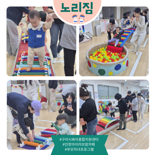 가정양육지원 [부모자녀프로그램]인창아이러브맘카페-노리짐 페이지 정보 작성자 관리자 댓글 0건 조회 145회 작성일 2025-12-20 10:16 본문 오늘은 '알록달록 무지개'를 주제로 신나게 활동했습니다.참여해 주셔서 감사합니다 ^^ 목록 이전글[부모자녀프로그램]구리시영유아케어센터-잉글리시키즈쿠킹 25.12.20 다음글[부모자녀프로그램]갈매아이사랑놀이터-노리아트 25.12.19