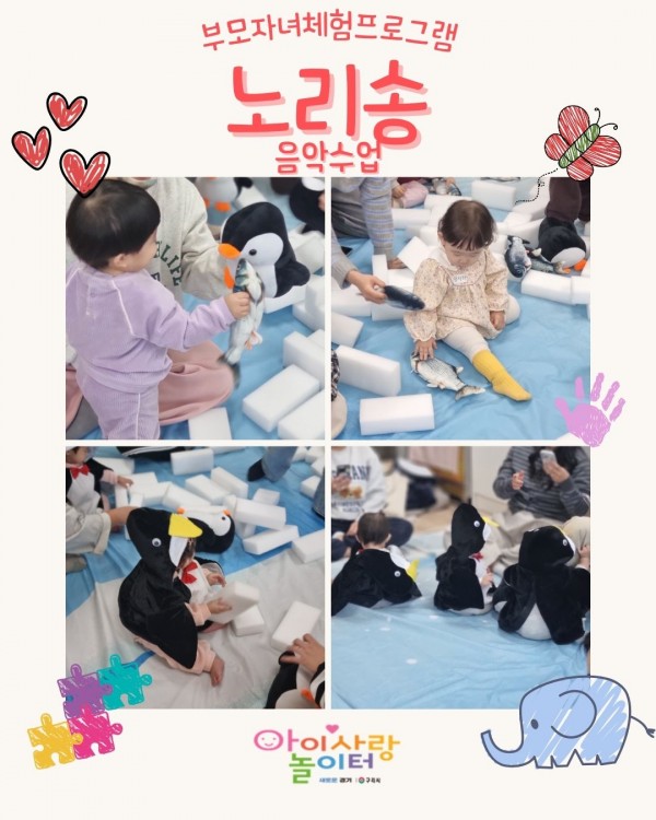가정양육지원 [부모자녀프로그램]갈매아이사랑놀이터-노리송 페이지 정보 작성자 관리자 댓글 0건 조회 26회 작성일 2026-01-23 13:25 본문 겨울 음악에 맞춰 "톤블럭" 악기 연주도 해보고귀여운 아기 펭귄이 되어 보았어요 참여 감사합니다 ♥ 목록 이전글[부모자녀프로그램]갈매아이사랑놀이터-노리짐 26.01.23 다음글[부모자녀프로그램]인창아이러브맘카페-노리토 26.01.22