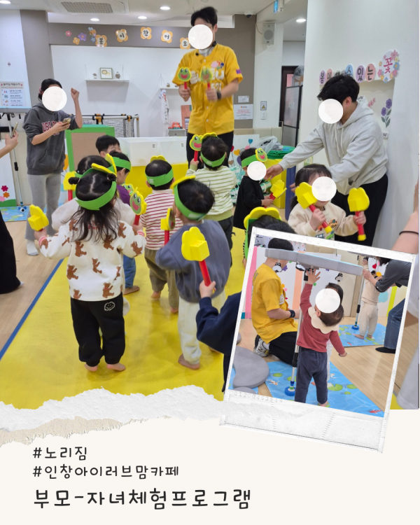 가정양육지원 [부모자녀프로그램]인창아이러브맘카페-노리짐 페이지 정보 작성자 관리자 댓글 0건 조회 5회 작성일 2026-03-28 14:56 본문 오늘은 '꼬물꼬물 올챙이와 폴짝폴짝 개구리'를 주제로 신나게 활동했습니다.참여해 주셔서 감사합니다 ^^ 목록 이전글[부모자녀프로그램]인창아이러브맘카페-잉글리시키즈쿠킹 26.03.28 다음글[영유아체험프로그램]구리시영유아케어센터-노리잡 26.03.28