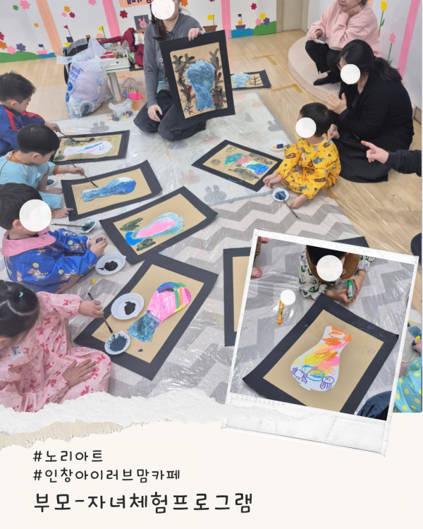 가정양육지원 [부모자녀프로그램]인창아이러브맘카페-노리아트 페이지 정보 작성자 관리자 댓글 0건 조회 4회 작성일 2026-04-09 11:11 본문 오늘은 한국의 전통화를 그려보고 신나게 물감놀이를 했습니다.참여해 주셔서 감사합니다 ^^ 목록 이전글[부모-자녀체험]구리시영유아케어센터-노리아트 26.04.09 다음글[부모자녀체험프로그램]갈매아이사랑놀이터-과학놀이 26.04.09