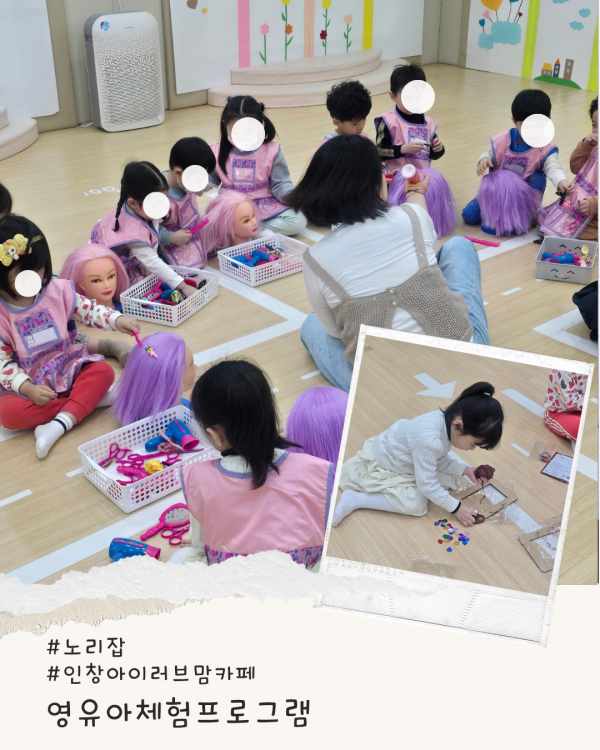 가정양육지원 [영유아체험프로그램]인창아이러브맘카페-노리잡 페이지 정보 작성자 관리자 댓글 0건 조회 7회 작성일 2026-04-16 14:54 본문 오늘은 '헤어 디자이너와 도예 선생님'으로 직업체험 했습니다.참여해 주셔서 감사합니다 ^^ 목록 이전글[부모자녀프로그램]인창아이러브맘카페-잉글리시키즈쿠킹 26.04.16 다음글[보육교직원 역량강화교육] 마음쑥쑥 그림책 인성 놀이 교육 26.04.16