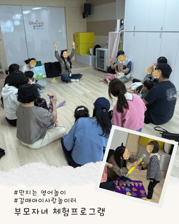 가정양육지원 [부모-자녀체험]갈매아이사랑놀이터-만지는 영어놀이 페이지 정보 작성자 관리자 댓글 0건 조회 7회 작성일 2026-04-23 17:01 본문 감정표현 손인형 & 동물 만들기 퍼즐교구들 이용하여 재미있는 영어놀이 해보았어요참여 감사합니다 ♥ 목록 이전글[부모-자녀체험]갈매아이사랑놀이터-노리송 26.04.23 다음글[놀이학습공동체] 소모임(원장, 영아, 유아) 26.04.23