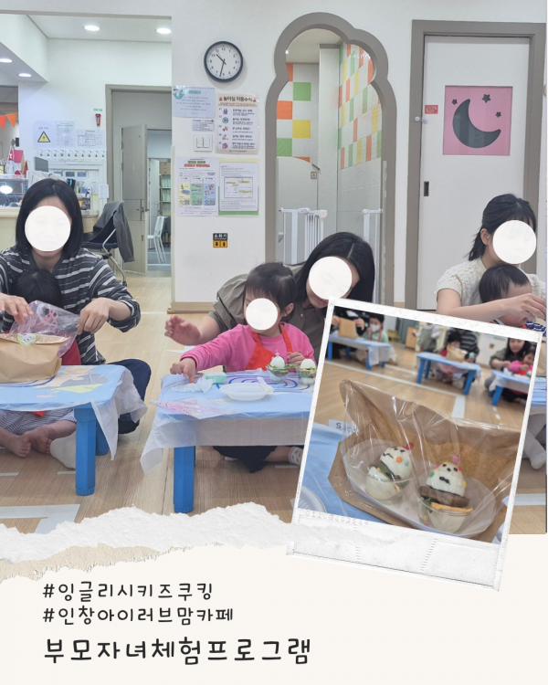 가정양육지원 [부모자녀프로그램]인창아이러브맘카페-잉글리시키즈쿠킹 페이지 정보 작성자 관리자 댓글 0건 조회 7회 작성일 2026-04-25 14:41 본문 오늘은 귀여운 '꼬꼬버거'를 만들었습니다.참여해 주셔서 감사합니다 ^^ 목록 이전글[부모자녀프로그램]인창아이러브맘카페-노리짐 26.04.25 다음글[부모-자녀체험]구리시영유아케어센터-노리짐 26.04.23