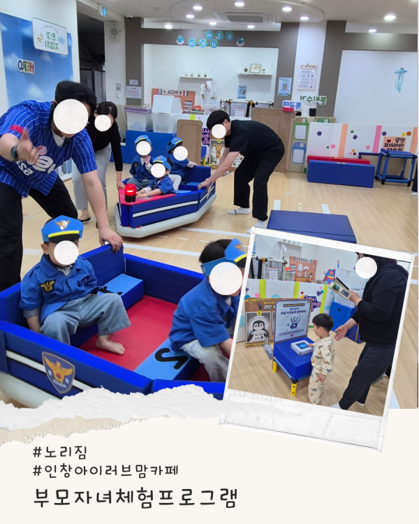 가정양육지원 [부모자녀프로그램]인창아이러브맘카페-노리짐 페이지 정보 작성자 관리자 댓글 0건 조회 4회 작성일 2026-04-25 14:49 본문 오늘은 경찰관이 되어서 즐거운 활동을 했습니다.참여해 주셔서 감사합니다 ^^ 목록 다음글[부모자녀프로그램]인창아이러브맘카페-잉글리시키즈쿠킹 26.04.25