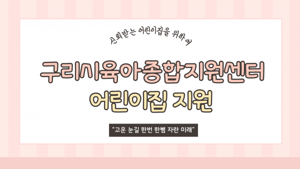 어린이집지원 2026 구리시육아종합지원센터 어린이집 지원 홍보 영상 페이지 정보 작성자 관리자 댓글 0건 조회 6회 작성일 2026-04-28 15:02 관련링크 https://youtu.be/gEeUJUJS5Ec 1회 연결 본문 구리시육아종합지원센터에서 진행하는 어린이집 지원 홍보 영상입니다. 목록 이전글[부모자녀프로그램]인창아이러브맘카페-노리송 26.04.28 다음글[부모자녀체험프로그램]구리시영유아케어센터-노리송 26.04.28