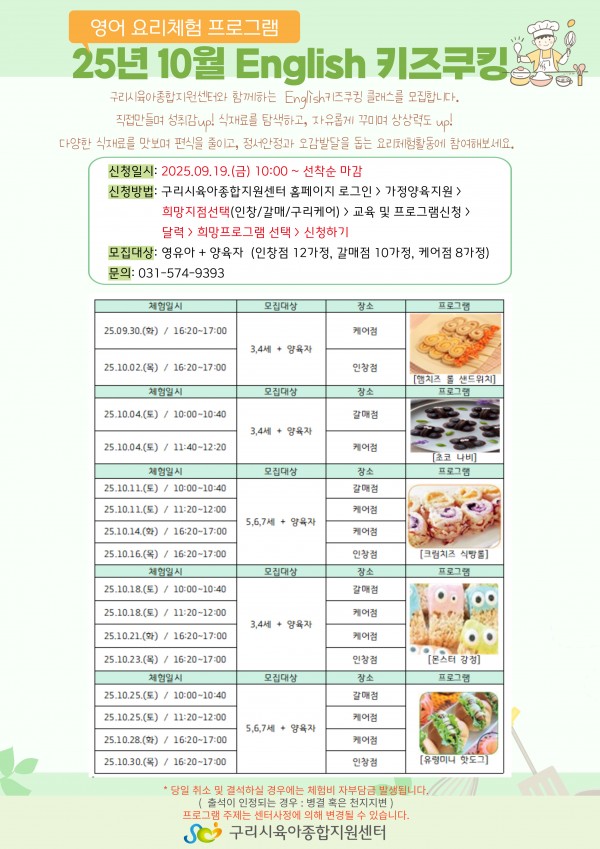 | 교육대상 | 구리시 관내 3세~4세 (22년~23년생) 영아가정 | 교육정원 | 8명 (대기자 8명) |